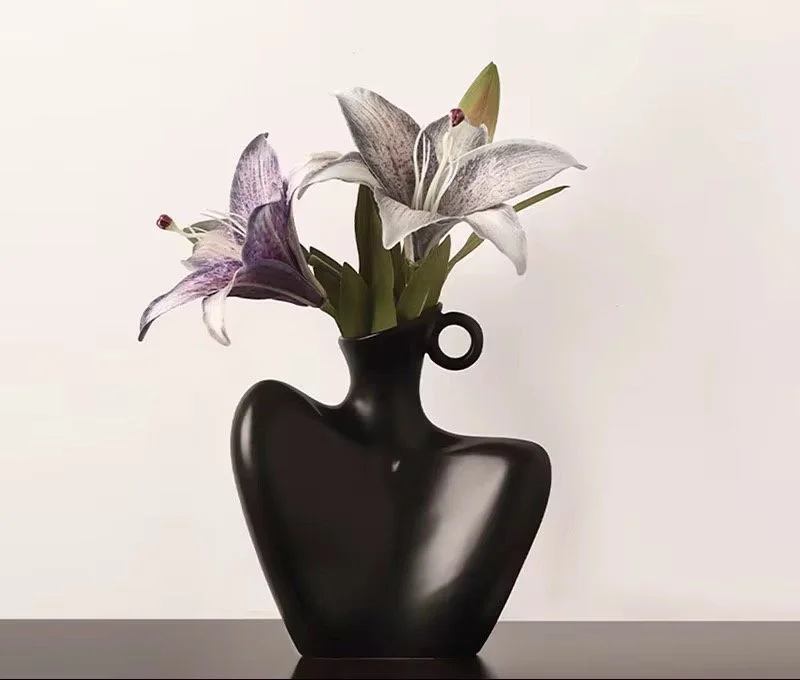 Bring elegance and modern artistry into your space with this sculptural black vase. Designed in the form of a graceful human figure, it makes a striking statement piece whether styled with fresh blooms, dried florals, or displayed as a standalone work of art.